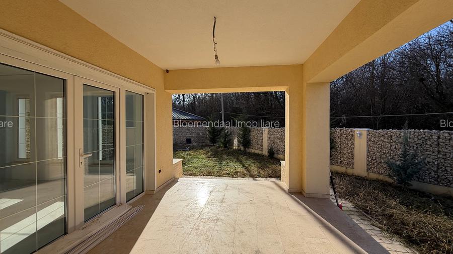Ziua începe cu o lumină blândă care pătrunde prin ferestrele uriașe, vitrate, ale livingului. Aici, spațiul este generos și aerisit, creat special pentru momentele în care îți dorești să te relaxezi și să te conectezi cu cei dragi, în fața șemineului ce încălzește casa cu o atmosferă caldă și primitoare. Bucătăria, închisă și bine organizată, te invită să-ți lași imaginația să zboare în prepararea celor mai savuroase rețete, în timp ce terasa largă, cu pardoseală din granit rafinat, se deschide către grădina îngrijită, plină de pomi roditori și aerul proaspăt al pădurii.