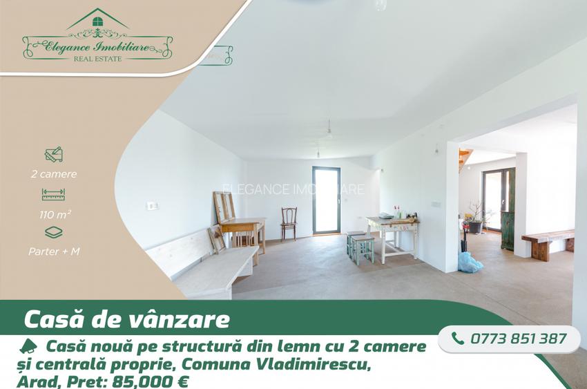 Casă nouă pe structură din lemn cu centrala proprie , Comuna Vladimirescu, Arad