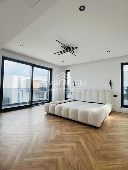 Va propunem spre vanzare o vila individuala cu 5 camere - Parter + etaj in suprafata utila de 207 mp, in cadrul unui proiect rezidential de 6 vile individuale aflat in faza 3 - finalizate Proprietatea are o amprenta de 120 mp din totalul de 350 mp de teren aferent si este foarte bine compartimentata - ofera camere mari si luminoase, cu atentie la detalii si finisaje la standarde premium de constructie si este compusa dupa cum urmeaza: Parter - Living 42 mp + bucatarie openspace 17 mp, baie si camera tehnica ; terasa exterioara si gradina aprox 200 mp Etaj - Dormitor matrimonial 22 mp + dressing 9 mp + baie proprie 8 mp; Dormitor 19 mp; Dormitor 13 mp; Birou 12 mp; Baie 5 mp, Terasa 5 mp; Hol Pret vanzare 438000 euro + tva la stadiul alb ( 500000 euro tva inclus) + Bonnus + 10000 euro pentru finisaje sau panouri solare Situat in Pipera, zona Matei Millo - intr o zona in plina dezvoltare cu acces rapid in str Popasului - A3, acest proiect rezidential ofera un standard de calitate premium al materialelor de constructie folosite si executie, dar si un design modern atat la exterior cat si la interioarele caselor. Dotari: Incalzire in pardoseala Climatizare cu ventiloconvectoare Pompa de caldura Centrala termica Finisaje premium la alegere. Curte individuala amenajata, cu gazon si sistem de irigatie Acces securizat in ansamblu + videointerfon Sistem de alarma Optional: panouri fotovoltaice alte detalii tehnice: Tamplarie aluminiu Cortizo Pereti exteriori: caramida Porotherm 30 Pereti interiori: caramida Porotherm 15 Termosistem: polistiren expandat 10 cm EPS80 Comision 0% Pentru alte detalii, planuri sau vizionare nu ezitati sa ma sunati, Rosana Oprea