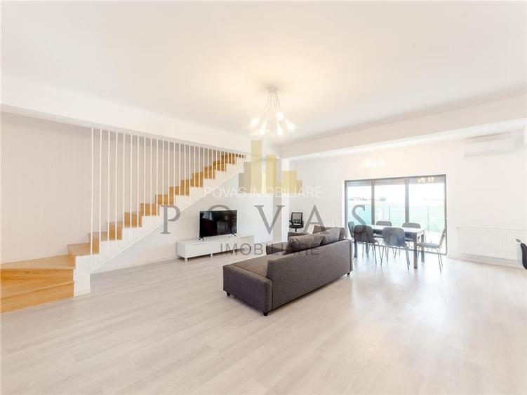 Vila duplex de inchiriere in zona - Balotesti, reper Laguna Verde, avand 4 camere, 3 dormitoare, suprafata totala construita 118,9 mp, suprafata utila 90,6 mp si suprafata teren 100 mp. Imobilul are amprenta 61 mp, curtea individuala libera 40 mp. Are structura din caramida , este construita in anul 2024, renovat , constructie din caramida porotherm, caramida , avand 3 bai, bucatarii si balcoane. Dotari : acoperis: lindab; bucatarie: da, mobilata, utilata, deschisa; calorifere: da; ferestre casa: term. pvc; incalzire casa: centrala termica; izolatii termice: exterior; mobilat: complet, modern; pereti: faianta, lavabil; plansee: beton; podele: parchet, gresie; structura casa: caramida; tip curte: individuala. Pretabil locuinta. ID intern: 1906.