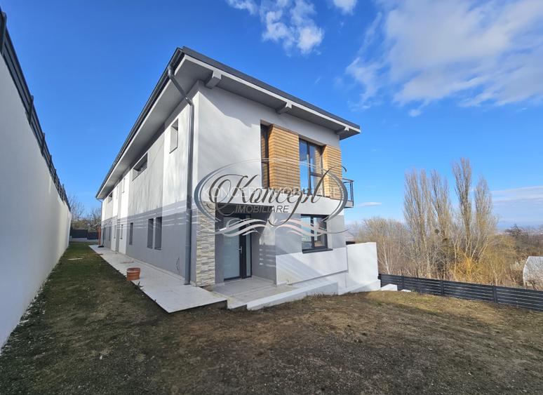 Koncept Imobiliare va ofera spre vanzare casa tip duplex in Feleacu, amplasata intr-o zona retrasa si linistita, preponderent rezidentiala, inconjurata de case noi si vile premium. Proprietatea beneficiaza de orientare est-sud, ceea ce asigura lumina naturala pe tot parcursul zilei si o atmosfera calda si primitoare. Accesul se realizeaza pe drum asfaltat, cu utilitati racordate, oferind confort si accesibilitate rapida spre Cluj-Napoca. Casa este dispusa pe 3 niveluri D+P+1 si are o suprafata utila de 220 mp, fiind amplasata pe un teren total de 390 mp, din care aproximativ 300 mp reprezinta curte libera. La demisol regasim doua garaje spatioase, cu dimensiuni peste media zonei, inca doua incaperi ce pot fi amenajate ca spatii de depozitare, hobby sau birou, precum si casa scarii. Parterul inalt este configurat cu hol de acces, living generos cu bucatarie open-space si zona de dining, baie si o terasa de aproximativ 40 mp, partial acoperita, ideala pentru relaxare si socializare. Compartimentarea parterului permite modificari, inclusiv separarea sau relocarea bucatariei, oferind flexibilitate viitorilor proprietari. La etaj se afla holul, dormitorul matrimonial cu baie proprie si dressing, doua dormitoare suplimentare, o baie si un balcon de aproximativ 10 mp, cu acces din fiecare dormitor. Constructia este realizata din caramida, cu structura din beton, izolata cu polistiren, iar fatada este placata cu lemn decorativ si tencuiala decorativa. Exteriorul se preda complet finisat, curtea este nivelata si imprejmuita, iar la interior imobilul se preda semifinisat, cu pereti tencuiti si trei straturi de glet, ferestre cu trei foi de sticla, incalzire prin pardoseala Rehau si centrala termica proprie. Printre punctele forte se remarca garajul dublu de dimensiuni generoase, rar intalnit la duplexurile din Feleacu, pozitionarea pe o strada retrasa ce ofera intimitate si liniste, suprafata utila echilibrata pe fiecare nivel, expunerea sud-est si curtea libera ideala pentru amenajare peisagistica sau zona de relaxare. Aceasta casa tip duplex din Feleacu este potrivita pentru o familie care isi doreste o locuinta moderna, spatioasa si luminoasa, intr-un cadru aerisit, cu intimitate si confort. Pentru informatii suplimentare, programarea unei vizionari sau pentru a afla oferta noastra completa va stam la dispozitie telefonic, prin e-mail sau la sediul agentiei noastre, pe str. Aviator Badescu, nr. 19, Cluj-Napoca.