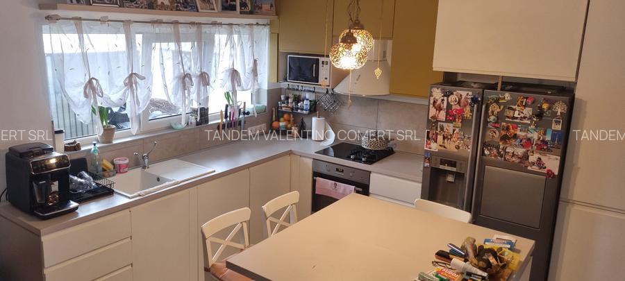 Duplex 4 camere ,bucatarie , 2 grupuri sanitare , mobilat complet (masina spalat rufe , masina spalat vase , frigider , aragaz , frigider aer conditionat ) , parter plus etaj 1 ,teren 180 , 100 mp utili, gaze , apa, canalizare , fosa septica , panouri solare ,rulouri geam ,2 locuri de parcare .