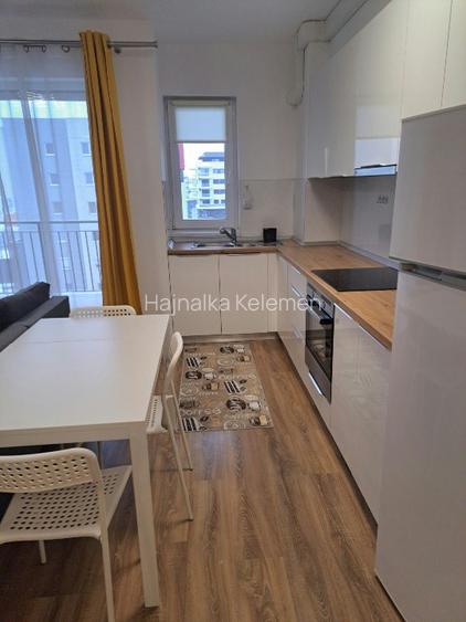 Este complet mobilat, utilat cu electrocasnice noi, televizor, frigider, plita electrica, cuptor+microunde (2 in 1), masina de spalat, aer conditionat.
