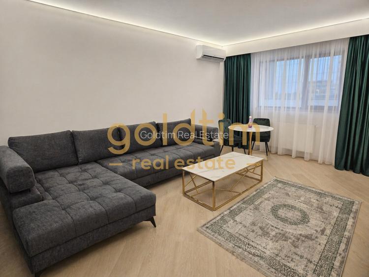 Zona de living este luminoasă și primitoare, cu o canapea confortabilă, spațiu de relaxare și dining, iar bucătăria este complet echipată, integrată armonios în designul interior. Atmosfera este una modernă și aerisită, ideală pentru un stil de viață urban.