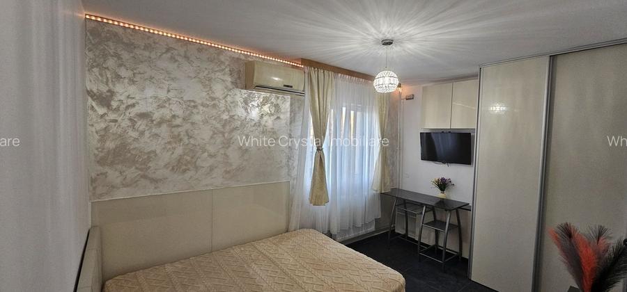 Agenția White Crystal Imobiliare închiriază garsonieră, în zona Piața Alba Iulia, semidecomandat, etaj 9 din 10, renovat. mobilat și utilat complet, suprafață 22mp.