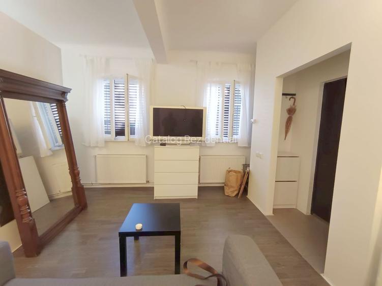 Va propunem spre inchiriere o garsoniere dubla - studio, etaj parter din 2,mobilata,utilata complet,dotata cu:Canapea,Pat matrimonial,spatii depozitare,bucatarie echipata,centrala proprie.Aproape de mijloace de transport in comun,Autobuz,Tramvai,metrou Victoriei la 5 minute de mers pe jos.Vecinatati:Calea Buzesti,Calea Victoriei,Piata Romana,Lascar Catargiu.Disponibila cu 1 Iunie 2026.