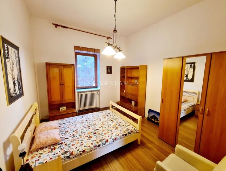 1 camera (de 14 mp) in apartament de 2 cam in vila, etajul 1/p+2, suprafata totala 51 mp, imobil fara risc seismic, Stirbei Voda- Berthelot - Cismigiu, vedere frumoasa spre o curte plina de verdeata, decomandat, mobilat si utilat complet, hol mare locuibil, camere inalte, doua grupuri sanitare, centrala termica proprie. Zona verde, sigura si linistita (Sectia de Politie este foarte aproape). Nu se plateste intretinere, doar gaze, apa, curent, atat cat se consuma. Numai pentru o fata/doamna, studenta/angajata, care sa imparta apartamentul cu o alta doamna. Chiria camerei 250 euro/luna.