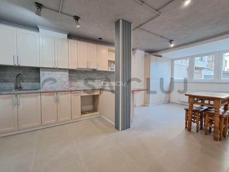 Vă propunem spre vânzare un apartament modern, recent renovat, cu suprafața utilă de 39,74 mp, situat la parterul inalt a unui imobil pe 8 nivele in cartierul Mănăștur in zona pietei Flora aproape de toate punctele de interes la pas. Compartimentare: Dormitor primitor, cu parchet din stejar masiv și aer condiționat; Living cu bucătărie open-space, mobilate și finisate cu atenție la detalii; Baie elegantă, dotată cu duș walk-in cu sticlă securizată de 8 mm, lavoar și wc suspendat, ventilator, oglindă cu dezaburire și corpuri inteligente cu wifi; Balcon izolat la exterior, ideal pentru relaxare; Boxă spațioasă la subsol, chiar sub apartament. Dotări și finisaje premium: Instalații electrice și sanitare noi, realizate de specialiști (conductori din cupru, țevi Tece, cadru wc suspendat Tece); Aparatură electrică modulară Schneider, prize și cabluri internet trase prin pereți; Gresie import Italia și tâmplărie termopan nouă; Două unități de aer condiționat moderne cu control wifi; Centrală termică Viessmann cu wifi, încălzire cu radiatoare Purmo; Balcon și interior finisate cu materiale de calitate superioară. Acest apartament reprezintă o alegere excelentă atât pentru locuință personală, cât și ca investiție, datorită poziției, renovării complete și facilităților de ultimă generație.