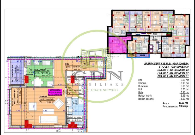 Garsoniera, decomandata, 55.85mp, cartier Cornitoiu, zona Liceul Bibescu