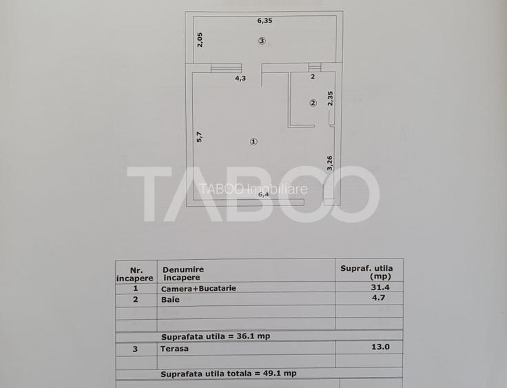 Studio de vanzare 36 mp util + terasa 13 mp finalizata 01 octombrie