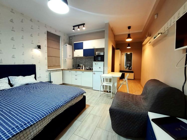 De asemenea, garsoniera de vanzare se vinde mobilata si utilata cu urmatoarele piese de mobilier si electrocasnice: bucatarie complet mobilata si utilata, frigider, mobilier bucatarie, aragaz, plita inductie, hota, masina spalat rufe, filtru cafea, masa, scaune, cuptor microunde, pat dublu, comoda tv, dressing, TV, perdele si draperii, baie mobilata, cabina de dus, cuier, dulap.