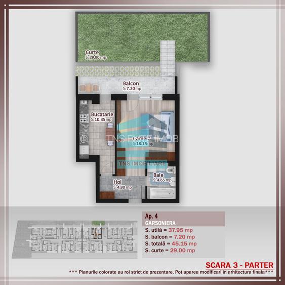 Garsoniera cu Gradina 29 Mp,Imobil P+3, Titan -Pallady,Metrou