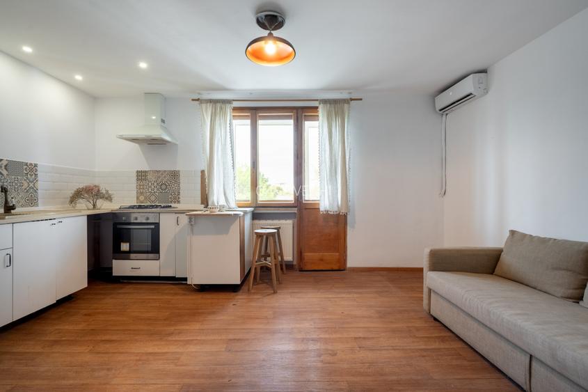 O mica bijuterie de 3 etaje a ramas neatinsa de vreme in inima centrului financiar al capitalei. La doi pasi de Piata Victoriei, pe o strada cu nume de doctor, ca in Cotroceni si cu acelasi aer interbelic, poti avea un loc cald si primitor, pentru un start cu dreptul in orasul care nu doarme! Ai tot ce iti trebuie, poate doar sa schimbi canapeaua cu un pat confortabil sau sa adaugi un pat, ca loc este destul! Te vei minuna in fiecare zi, urcand scarile, de ceea ce stiau sa faca mesterii interbelici si de cat de durabile erau materialele folosite atunci: marmura, mozaic, lemn masiv. Scara in sine este un mic muzeu. Despre zona si despre cat de repede ajungi oriunde ai nevoie, nu povestim. Hai acasa!