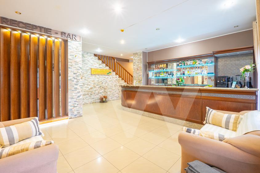 Proprietatea, edificata in 2010, se afla pe un teren de 1.690 mp si are o amprenta la sol de 300 mp, desfasurata pe demisol, parter, etaj si mansarda. Este complet functionala si dispune de bar-restaurant, terasa exterioara, 13 camere, apartament privat si parcare proprie.