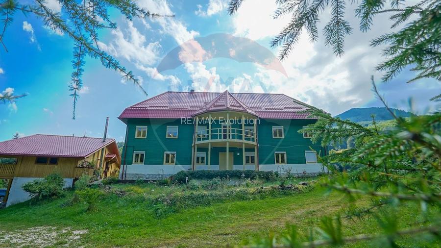 Raw Nature tourist resort, located on DN103A in Dalghiu, Brasov county, near the Valley of the bison, 8 km from Valea Buzaului and 54 km from Brasov. The property is located on an area of 8 Ha, in a quiet place, at the foot of the Ciucas mountains, ideal for nature lovers or for those looking for privacy, away from the hustle and bustle of the city. At Raw Nature you will find a huge yard with the river that passes in front of the cottage and with roads through the forest waiting to be discovered. Optionally, you can organize festive Easter and Christmas meals, cart rides, horseback riding and horseback riding, photography in a hunting enclosure, hikes on the Bison Valley or at the Urlatoarea waterfall. The property has 6 bedrooms, 4 bathrooms, living room with fully equipped kitchen, 14 beds, gazebo with barbecue and dining area. The energy supply is made from renewable resources, respectively solar panels, wind turbine, hydraulic turbine. Basically, a turnkey business for sale, which will generate income for the new owner, immediately after the transfer of ownership, especially since there are no maintenance costs.