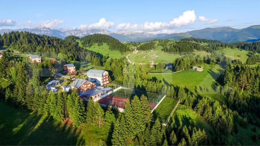 Din suprafata totala a terenului, peste 33.000 mp sunt liberi de constructii, oferind viitorului proprietar posibilitatea de a extinde resortul cu un parc de aventura, trasee de tiroliana, un parc cinegetic sau chiar o partie de sanie privata.