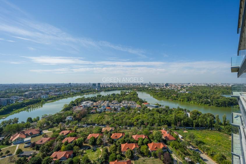 Probabil cel mai bun view din Bucuresti! La sud, din living, vei savura cafeaua de dimineata privind rasaritul peste lacul Floreasca si Parcul Bordei. La Est vei admira luminilie cladirilor de birouri din zona Floreasca. Iar la Nord Vest, din dormitorul matrimonial, iti vei incheia ziua cu cel mai fain apus asupra orasului.