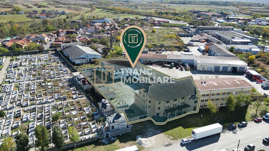 Ansamblul este compus dintr-un teren de 2.659 mp, cu mențiunea importantă că, după rectificare, suprafața va depăși 3.100 mp, aspect care adaugă valoare suplimentară investiției. Proprietatea beneficiază de un front stradal de 38 ml și include două corpuri principale: o clădire din cărămidă, dispusă pe Subsol + Parter + 2 Etaje, și o hală pe două niveluri, Parter + Etaj, construită din cărămidă și BCA.