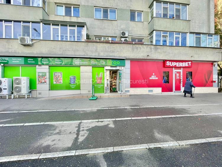 Spatiul are o suprafata utila de 74 mp, din care 23 mp reprezinta sala de vanzare. Vitrina dubla, pe doua laterale, de aproximativ 8 metri liniari, asigura vizibilitate foarte buna.