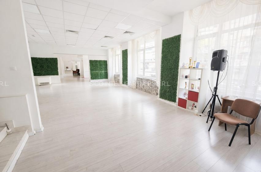 Spațiu versatil de 190 m², situat la etajul 2 al unui imobil mixt cu 8 niveluri, ideal pentru birouri, studio de dans sau alte activități similare. Beneficiază de compartimentare flexibilă, lumină naturală generoasă, centrală termică proprie și două grupuri sanitare separate (bărbați/femei). Un cadru elegant și adaptabil, potrivit pentru multiple utilizări profesionale.