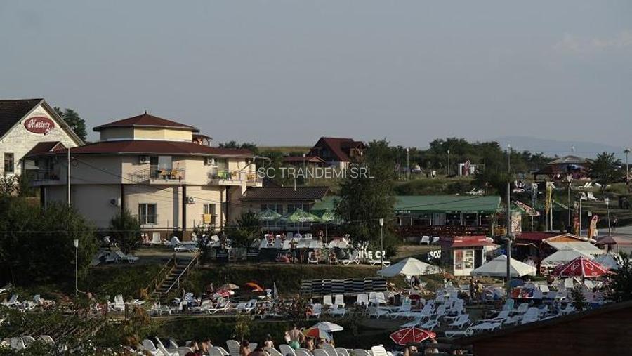 ) , în incinta lacurilor naturale, pe plaja, la doar 14 km de Sibiu si 10 km fata de Aeroportul Internațional Sibiu.