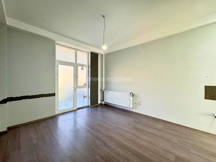 Spatiul imbina eficienta unei suprafete compacte cu beneficiile unui bloc nou: intrare directa din strada, vitrina, terasa proprie in partea din spate si parcare, fiind o solutie practica si usor de adaptat pentru diverse tipuri de business de servicii.