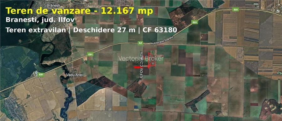 Teren extravilan 12.167 mp – Branesti, Ilfov – deschidere 27 m
