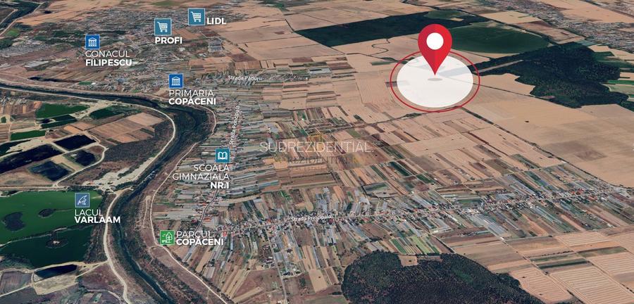 Teren intravilan 38.876 mp, Deschidere 72 ml, Copaceni, Vidra