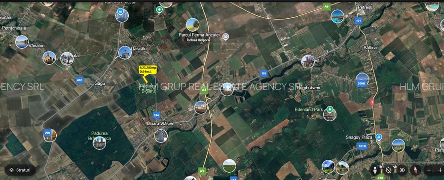 Teren compact 23.200 mp - deschidere 54m.l.- Moara Vlasiei