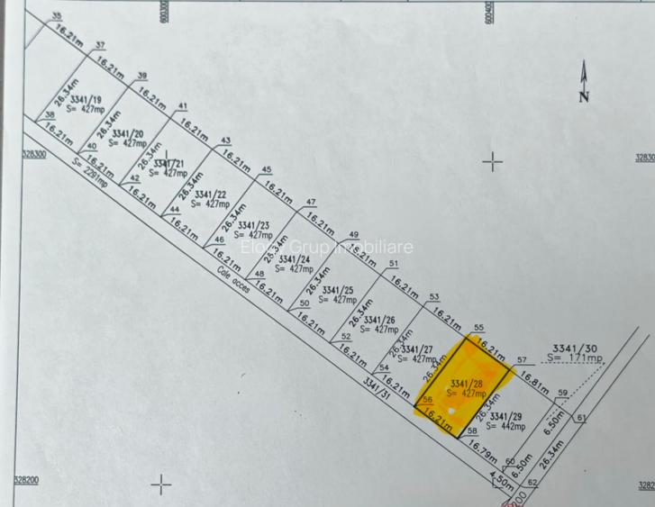 Teren de vânzare în Cernica intre case 427 mp deschidere 16 m