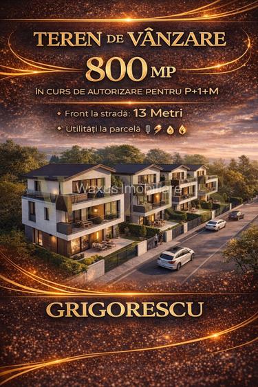 Teren Intravilan cu AC - 800MP I Front 13 M I Grigorescu