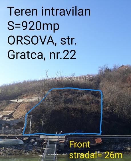 Teren intravilan, 920 mp, fs 26 m, în Orșova, pe malul Dunării, comision 0%