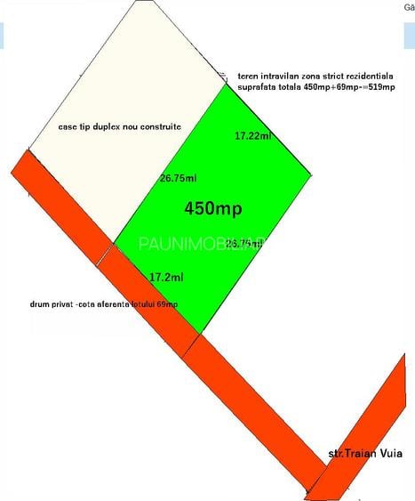Teren intravilan 519mp(450+69 cota drum),zona rezidentiala ,utilitati!