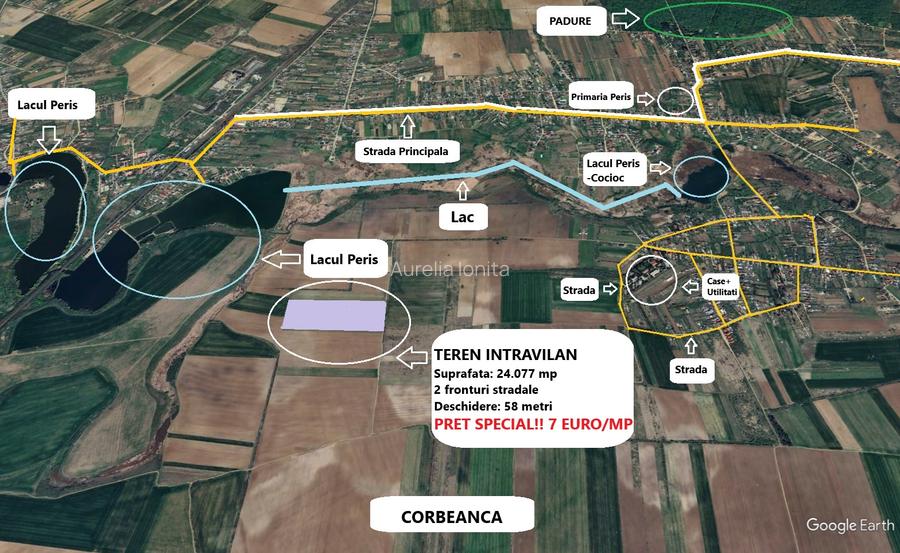 Proprietar - Teren intravilan – Periș - 2 fronturi stradale - Investitie ideala