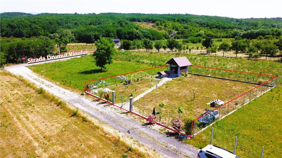 Terenul este complet împrejmuit, având fundație din beton armat, stâlpi, poartă de acces și plasă metalică. Parcela este curată și bine întreținută, cu arbori plantați: platani, brazi, sălcii, carpen, tuia, trandafiri, pomi fructiferi și alți arbuști ornamentali. Pe teren se găsește un foișor de 9 mp, construit pe o fundație înaltă din beton, cu stâlpi solizi din bolțari de beton. Pereții sunt zidiți cu cărămidă veche, iar acoperișul este realizat din grinzi groase de lemn, acoperit cu tablă metalică. Un spațiu perfect pentru momente de relaxare în natură.