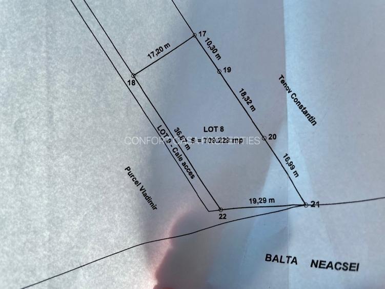 Campul Pipera - Teren 709 mp, teren construibil campul Pipera, terenul se afla pe drum de servitute, deschiderea la drumul de servitute este de 37 m, cu o adancime de 17 m, zona este in plina dezoltare. Terenul are deschidere la lac.