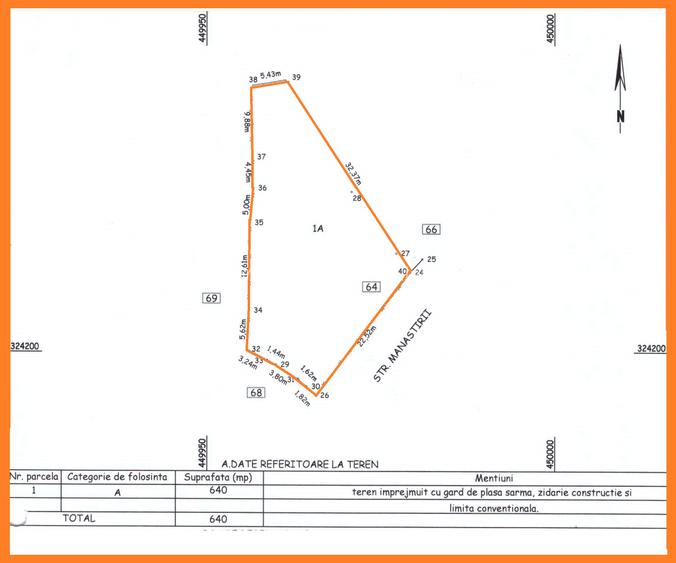 Teren intravilan 640 mp, D = 22,5 m, zona centrala - str. Manastirii