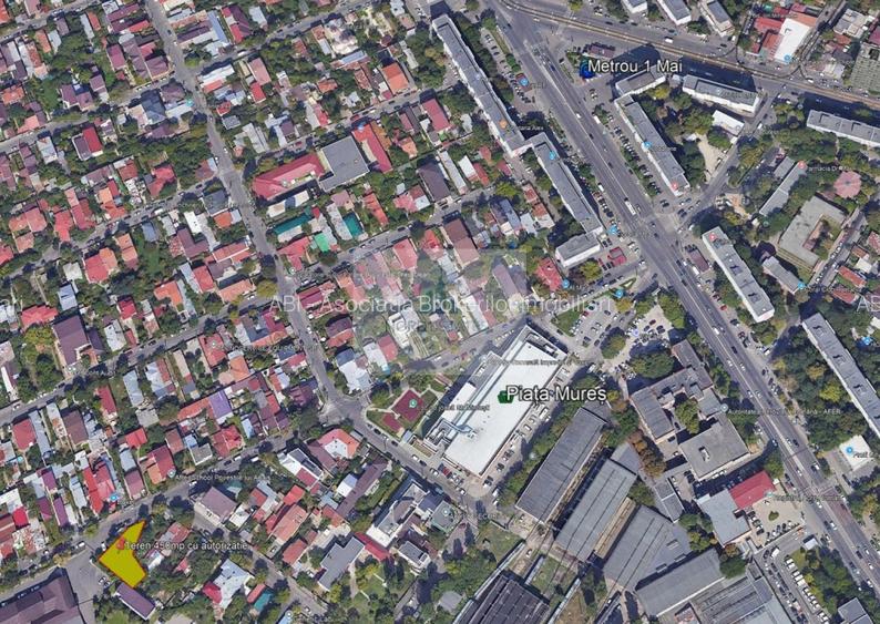 Terenul beneficiază de toate utilitățile — apă, gaze, canalizare, electricitate — cu avizele aferente, și se află la doar 5 minute de stațiile de metrou 1 Mai și Piața Mureș.
